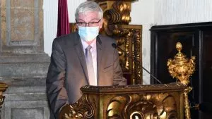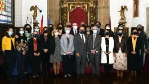 Le 11 novembre 2021, les professeurs Rose-Noëlle Schütz et Éric Savaux, professeurs émérites de la Faculté de droit et des sciences sociales de l’Université de Poitiers et membres de l’Équipe de recherche en droit privé, ont été honorés par l’Université de Saint Jacques de Compostelle. Le Recteur Antonio López Díaz leur a remis les insignes d’or de l’Université, lors d’une cérémonie dans le salon des diplômes – auparavant chapelle – de l’ancien Collège Saint Jérôme.